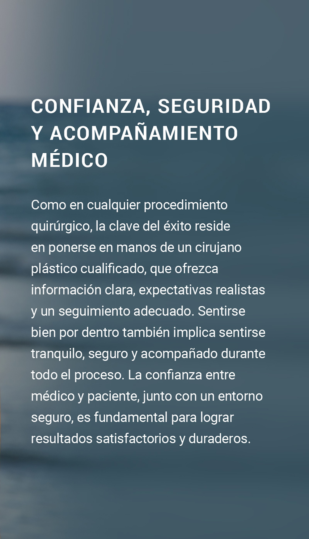 La valoración personalizada efectuada por un médico especialista en cirugía plástica es clave para que cada persona se sienta escuchada, acompañada y segura durante todo el proceso.