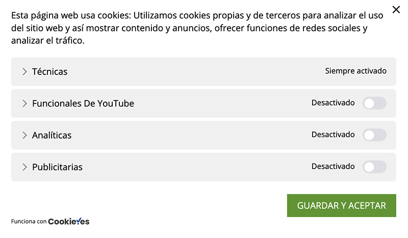 Desde este panel podrá configurar las cookies que el sitio web puede instalar en su navegador, excepto las cookies técnicas o funcionales que son necesarias para la navegación y la utilización de las diferentes opciones o servicios que se ofrecen.